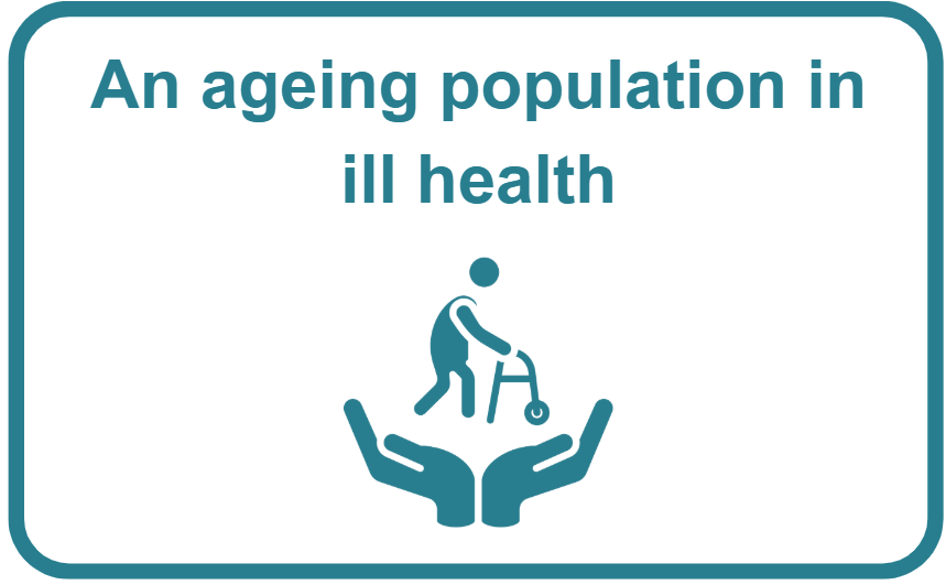 Population estimates predict that in the next 10 years the population aged 75+ in Wakefield will increase by 19%, from around 34,500 to almost 41,000. However, a good quality of life is being cut short for many. The number of years a person can expect to live a healthy life, free from illness or disability has been falling [5]. Healthy life expectancy for males and females is currently 56 years. This means that a high number of people can expect to live most of their older years in poor health – around 22 years for men and 25 years for women. As more of the population live to 80 years and beyond, they will be at higher risk of developing multiple health conditions including dementia and age-related frailty. This will lead to an increased need to provide support to family and friends taking on unpaid carer roles and a requirement for local health and social care systems to be able to respond to these changing needs.