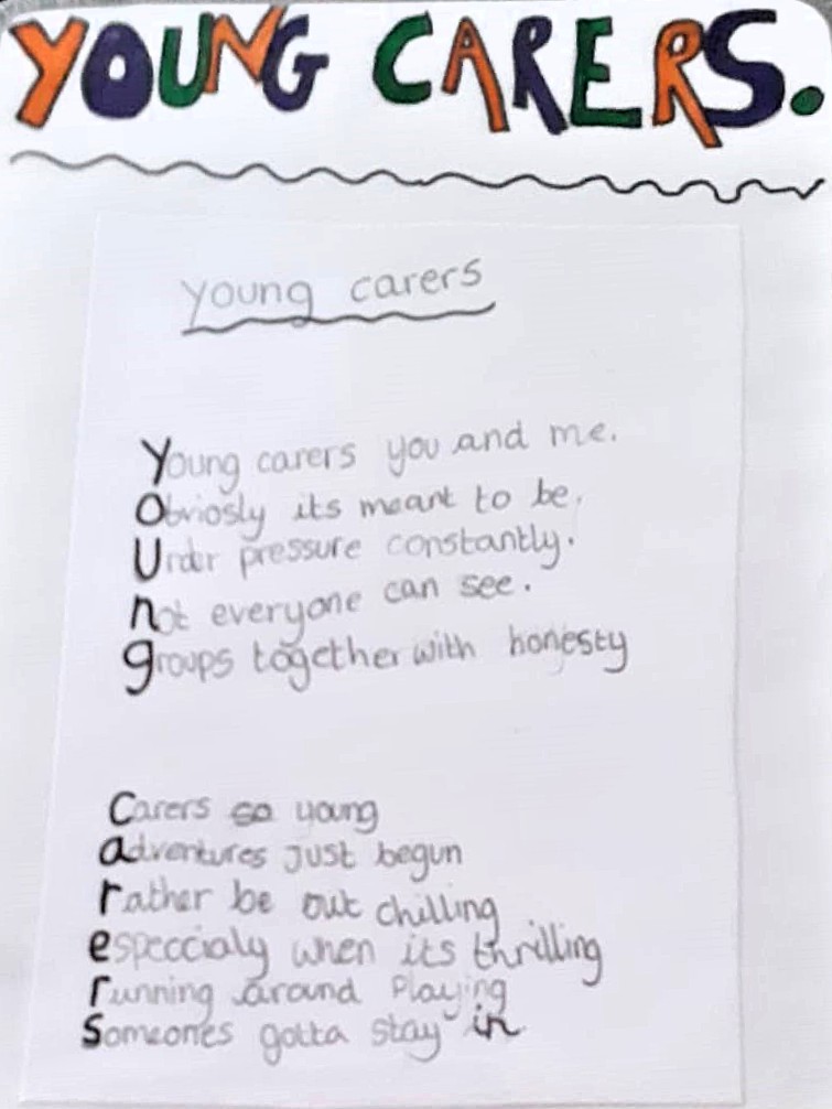 “Being a young carer means I help someone I love. When I am emotional at school my friends support me.”